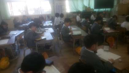 1年生は2学期の振り返り活動中です。学習や生活など学校生活についてプリントをもとに振り返りをしました。