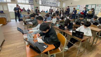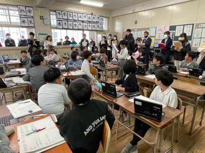 大阪市に勤める教員のさらなる授業力向上を目指し、総合研究発表会が行われました。本校は、社会科の会場校として、授業を公開しました。