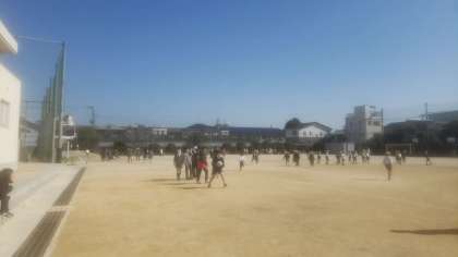 2月とは思えない陽気に誘われ、大勢の子どもたちが運動場で遊んでいます。中には、半そでの人もいましたが、運動するにはちょうど良いぐらいかな。