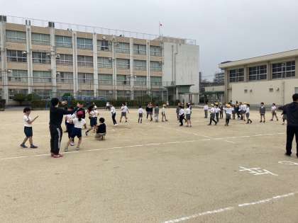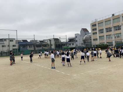 運動委員会の皆さんが企画したドッジボール大会が20分休みに行われました。色々な学年の大勢の子どもたちが参加していました。