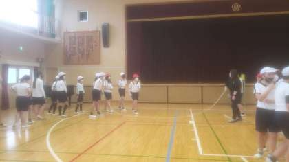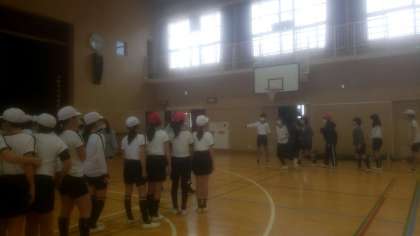 今日の競技は、講堂で大なわとバスケットボールです。