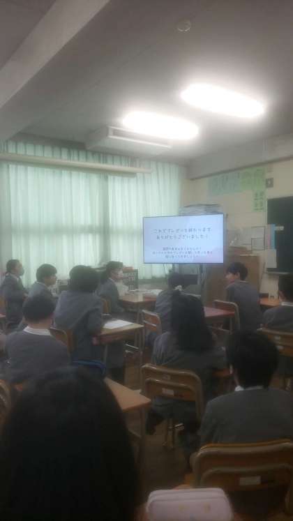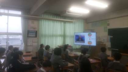 附属6年生の4人が、同じように社会問題に取り組んできた本校5年生の前でプレゼンをしてくれました。