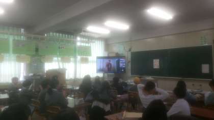 今朝の朝会はオンラインによる「私は誰でしょう?」クイズです。5つのヒントから、どの先生なのかを当てるという内容です。