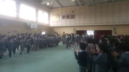 今日の2時間目、全学年が集合して「6年生を送る会」を行いました。