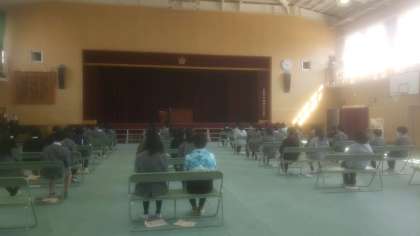 今日は舞台に上がって、卒業証書授与の練習を行いました。少しずつ、本番モードにギアを入れてます。