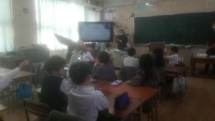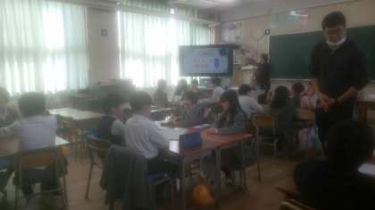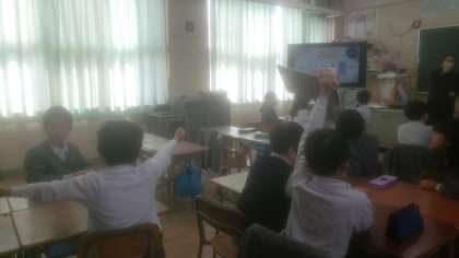 グループで力を合わせて、C-NETの先生とクイズを楽しんでいます。