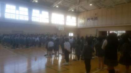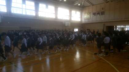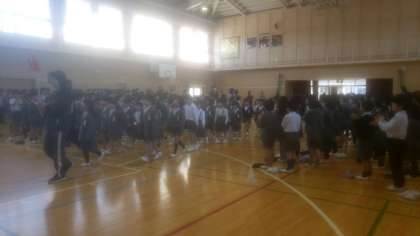 1年生と2年生〜6年生の対面式が講堂で行われました。コロナの影響で昨年度まではオンラインによる対面でしたが、今年は直接顔を合わせての対面です。