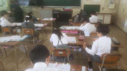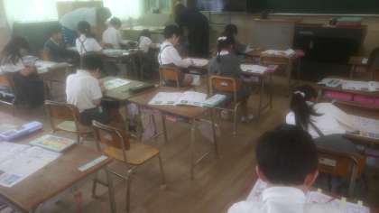 ひらがなの学習です。お手本をしっかりと見ながら、丁寧に書いている人が多かったです。