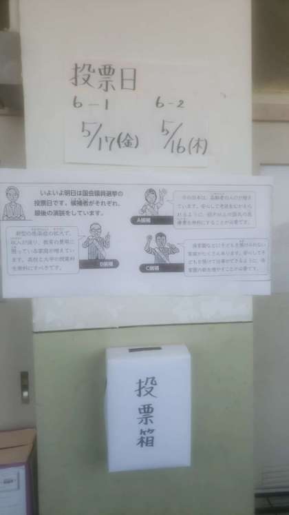 模擬選挙をきっかけとして、選挙の学習に取り組みます。