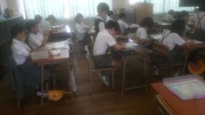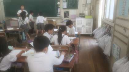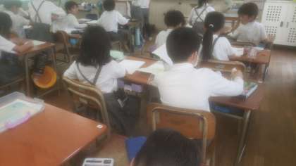 3年生では釘や金づちを使って「コリントゲーム」という作品を製作します。今日はその下地となるデザインを描いています。