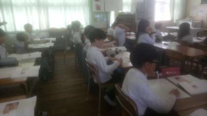 説明文「ヤドカリとイソギンチャク」の学習です。各中段落には、筆者が設定した問いとそれに対する回答という形式で構成されています。今日のめあては、回答を要約することです。