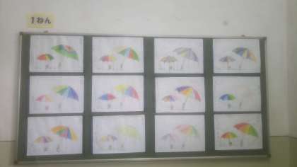 6月に相応しい梅雨をテーマにした作品が掲示されています。