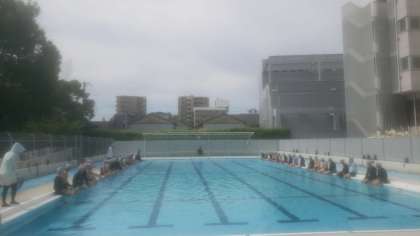 少し曇り空ですが、水温は連日の暑さの影響で、高めで、みんな気持ち良く活動を楽しんでいます。安全第一で水泳学習を進めていきますので、ご家庭での体調管理等十二分によろしくお願いいたします。