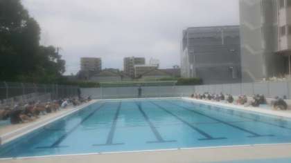 今日から水泳指導が始まりました。(一番風呂)ならぬ(一番プール)は6年生です。