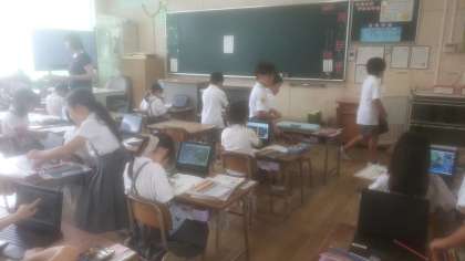 一人一鉢で育てている朝顔観察日記の記録中。変化や成長に気付いたかな?