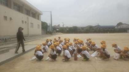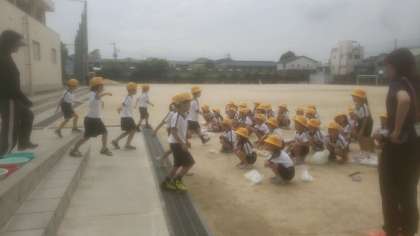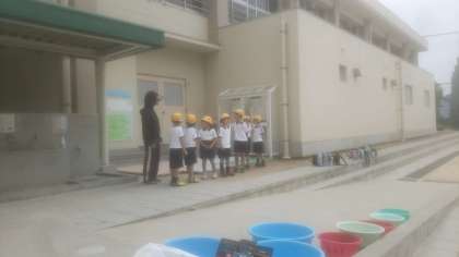 今日はシャボン玉大会です。はじめに係の人達が活動のめあてを発表してくれました。