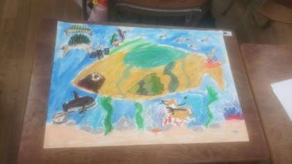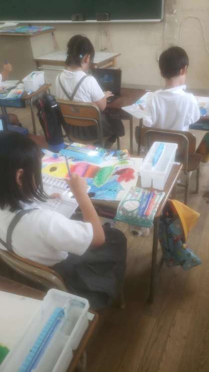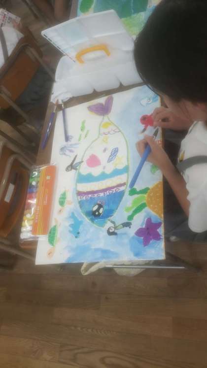 パスや絵の具を使って、しっかり塗るることが出きていました。素敵な作品の完成です。