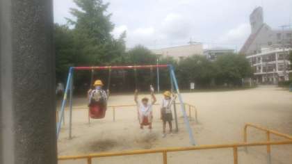 一度に2クラスが入ることが出来ません。なので、1クラスは工場近くの公園で待機中。