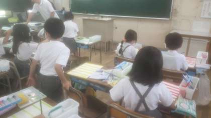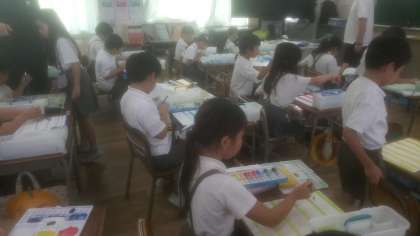 2年生から始まった絵の具を使っての学習。みなさん随分と慣れてきましたね。