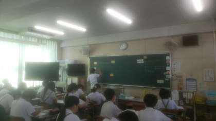 統計の学習中です。「中央値」という新たな言葉が出てきて、その意味をみんなで確認しています。