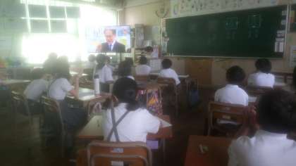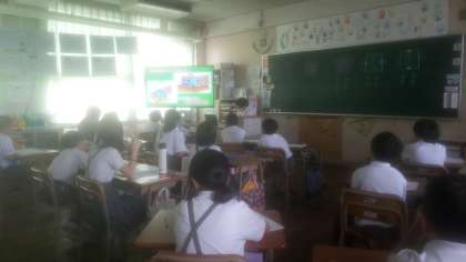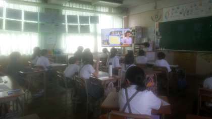 4年生は来週月曜日に社会科学習の一環として津波高潮センターに行きます。今日は事前学習として動画を視聴しています。