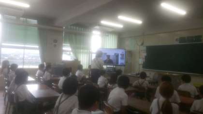 今朝の児童朝会では新しく赴任された事務職員と今日から実習が始まる教育実習生の紹介がありました。