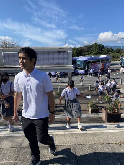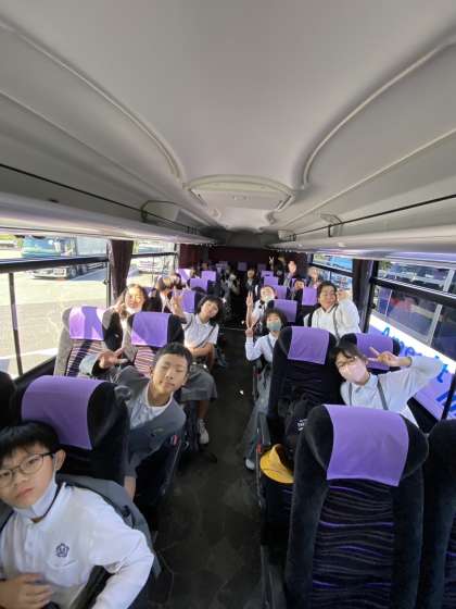 2回目のトイレ休憩です。道路は混むこと無く、順調に進んでいます。少しバス酔いの人もいますが、子ども達元気です。