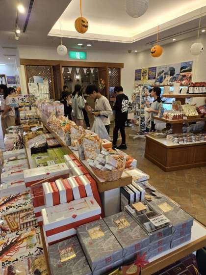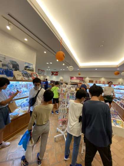 お土産タイムです。お小遣いは限られています。明日行くスペイン村でもお土産は買うことができます。みんなどこで何を買うのかを思案しながら、買い物をしています。衝動買いの気持ちを抑え、賢い買い物をしていますね。