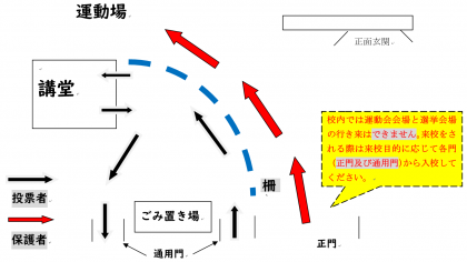 次の日曜日10月27日は運動会です。今年度は選挙と重なりましたので、入場方法を上記の図のようにしております。詳しくは下記をクリック下さい。
