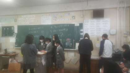 2学期最終日。ほとんどのクラスではお楽しみ会が行われていました。6年1組にお邪魔したところ、ゲームに飛び入り参加させて貰いました。