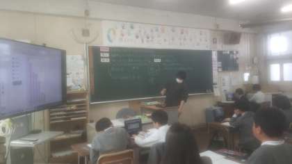 柏原市のぶとう農家が抱える様々な課題について調べたあと、課題解決策についてみんなで予想をしています。
