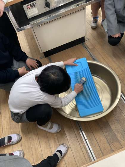 昔使われていた様々な道具の中から、洗濯板を実際に使ってみました。