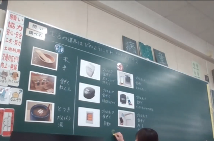 3年生。道具の移り変わりをきっかけにして、今後の学習計画を立てる授業です。