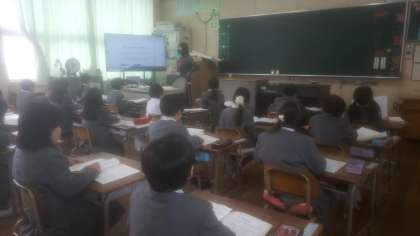 英語の歌を合唱中です。元気な歌声はもちろん、正しい発音で歌っていることに感心しました。