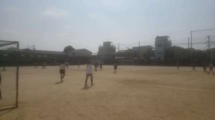 お楽しみ会を兼ねてのサッカー大会。穏やかな天気で動きも軽やかでした。