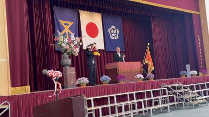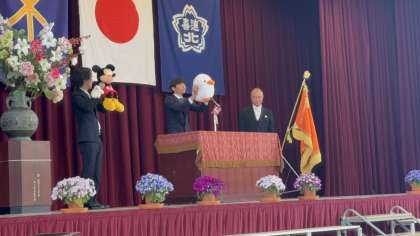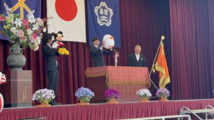 校長先生のお話の中で登場したミッキーとあひるのアーちゃんです。