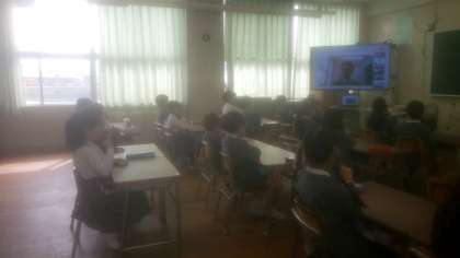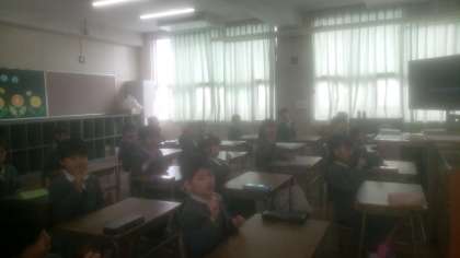 担任の先生の発表の後、全員で校歌を斉唱しました。2年生は手話を交えて歌っていました。