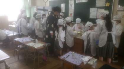 6年生が全てのことをやるのではなく、1年生が作業をしているそばでサポートをする6年生の皆さん。素敵です。