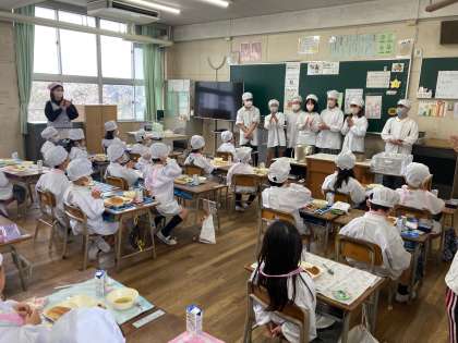 六年生の活躍と一年生の頑張りで、給食の準備もどんどん早くなってきました。
