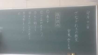 今日から学習する物語文のタイトルは「さなぎたちの教室」です。この題名からどのような物語なのかを予想してから本文を読んでいきます。