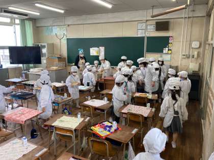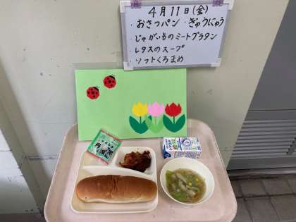 六年生の活躍と一年生の頑張りで、給食の準備もどんどん早くなってきました。