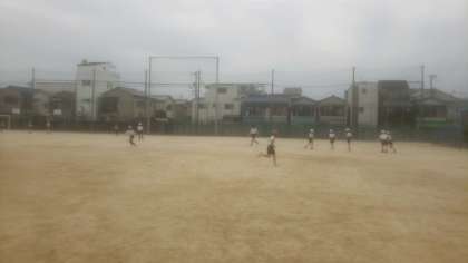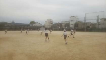 準備体操を兼ねて紅白に分かれしっぽ取りゲームをしていました。高学年ともなると、追いかける方・追いかけられる方 どちらのスピードも速いです。