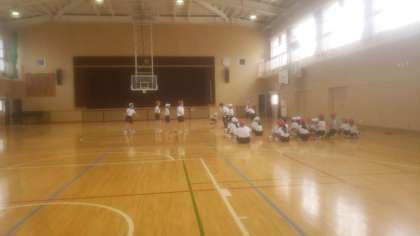 少人数に分かれての大縄跳び。直ぐに跳ぶ順番が回ってくるのでかなりハードです。