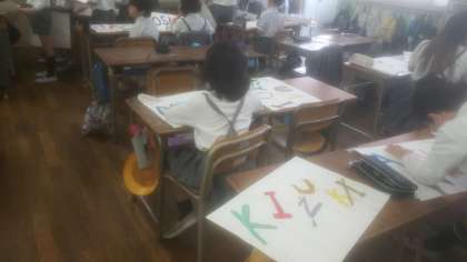 ローマ字で書いた自分の名前に装飾をつけて立体にみせます