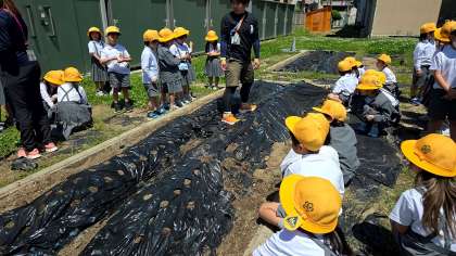 先週に引き続き今日も学習園で種植えです。今日はヒマワリの種を植えました。