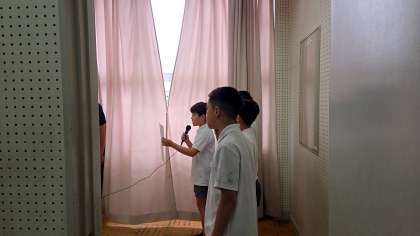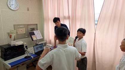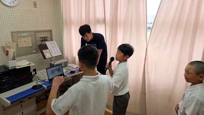 今朝の児童朝会では、まずは校長先生から先週の万博の遠足についてと万博の歴史お話がありました。次に、運動委員会からのイベントなお知らせ、係の先生からのお話がありました。