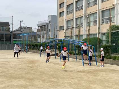 のぼる、つかまるなど、体の動きを身につけていきます。