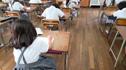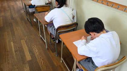 漢字の小テスト中です。2年生で新しく習う漢字は160字です。今日はそのうちの10問