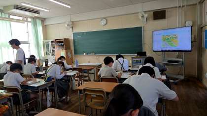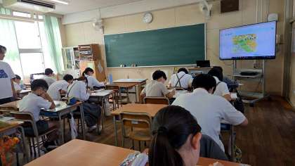 米作りが始まった頃の想像図を見ながら、気が付いたことをノートに書きだしています。人によって違う様々な気づきがありました。