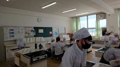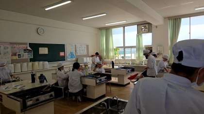 今日は2組の皆さんが調理実習に取組みました。職員室の方にもおすそ分けを頂きましたが、とても美味しかったです。ごちそうさまでした!